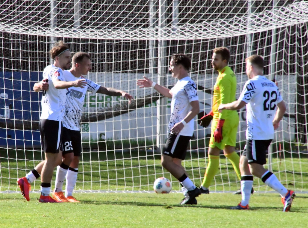 Der Torhunger der Borussen wurde anschließend durch die tragische Verletzung eines ihrer Matchwinner dann abrupt gestoppt. Denn man merkte der Mannschaft in Schwarz und Weiß die Betroffenheit deutlich an, und so kamen die Gäste jetzt nicht nur etwas besser ins Spiel, sondern auch durch Patrick Meyer (80.) und Tim Walle (90.) noch zur Ergebniskosmetik. Den Schlusspunkt setzten aber dennoch die Borussen, bei denen nach einem Eckball und folgender Strafraumturbulent nacheinander die eingewechselten Dilowan Günel (per Kopf) und Leon Bayer (aus kurzer Distanz) den siebten Treffer verpassten. 6:2 gewonnen, sehenswert herausgespielte Tore, 21 Treffer in 6 Heimspielen (das sind im Schnitt mehr als drei pro Spiel), insgesamt ein Spiel, das sicher mehr als die nur 250 Zuschauer verdient gehabt hätte – dennoch konnte sich nach den 90 Minuten kaum einer über den Sieg freuen.