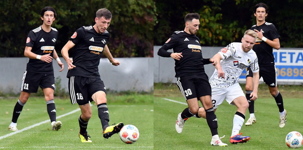 Derzeit nur Platz 11 – sicher nicht das, was sich Trainer Thomas Bettinger (Foto oben) und sein spielender Co-Trainer Samuel Ikas (Foto oben, rechts im Hintergrund) vorgestellt haben. Sie bauen vor allem auf Kapitän Johannes Reichrath (Foto unten li.) und Top-Stürmer Lukas Mittermüller (Foto unten re. gegen Kristof Scherpf). (Fotos: -jf-)