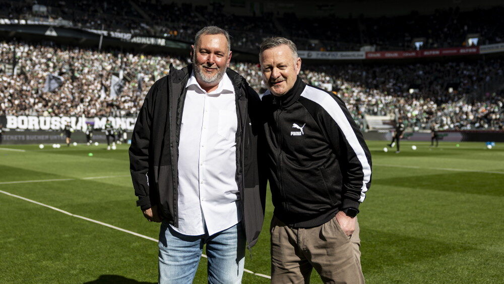 Es ist kein Aprilsscherz! Ausgerechnet am 1. April wird bekannt, dass Bundesligist Borussia Mönchengladbach im Mai zu einem Benefizspiel ins Ellenfeld kommt. Anlass: Das 60jährige Jubiläum des ersten Bundesligaspiels in der Geschichte der „Fohlenelf“, die im August 1965 mit Mittelfeldstar Günter Netzer beim 1:1 im Ellenfeld ihren ersten Bundesligaauftritt hat. Der erste Vorsitzende Jörg Eisenhuth weilt beim Spiel gegen RB-Leipzig im Borussia-Park am Niederrhein, um mit Gladbachs Sportchef Roland Virkus (Foto oben) die Formalitäten zu klären. Den Kontakt hatte Klaus Hoffmann, TV-Produzent, Sport- und Eventmanager sowie CEO der IA-Sports Agentur hergestellt. Hoffmann hatte bereits bei der legendären Käfer-Tour der Borussia 2016 seine Verbindungen spielen lassen.