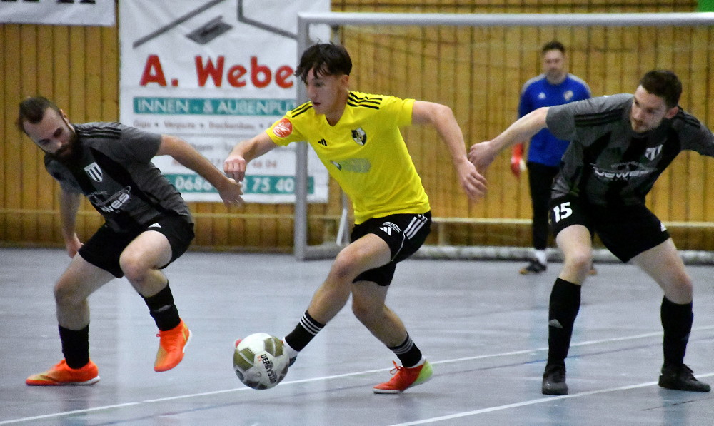 Erstmals nach langen Jahren nimmt Borussia wieder an zahlreichen Hallenturnieren (wie z. B. in Theley mit Dominik Cullmann/Foto oben: -jf-) teil. „Wir wollen wieder präsenter sein beim saarländischen Budenzauber“, begründet Trainer Jan Berger, der viele seiner Spieler zur freiwilligen Teilnahme motivieren kann, die Maßnahme. Zwar gelingt die Qualifikation für das Masterfinale in der Saarbrücker Saarlandhalle nicht, aber die war auch gar nicht als Ziel angedacht. Die Jungs hatten auf jeden Fall jede Menge Spaß!