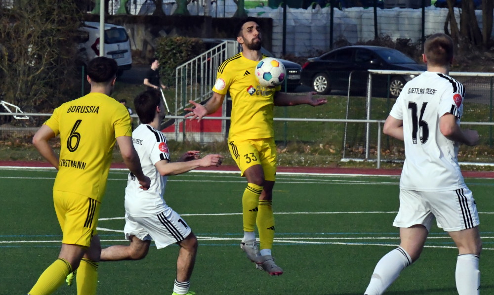 Mangelnde Durchschlagskraft in der Offensive ist die Hauptursache für die 0:2-Heimniederlage der Borussia gegen einen sehr effizienten TuS Herrensohr. Zweifacher Torschütze für die Gäste ist ausgerechnet ein früherer Jugendspieler der Borussia: Jodi Daoud (Foto oben/-jf-).