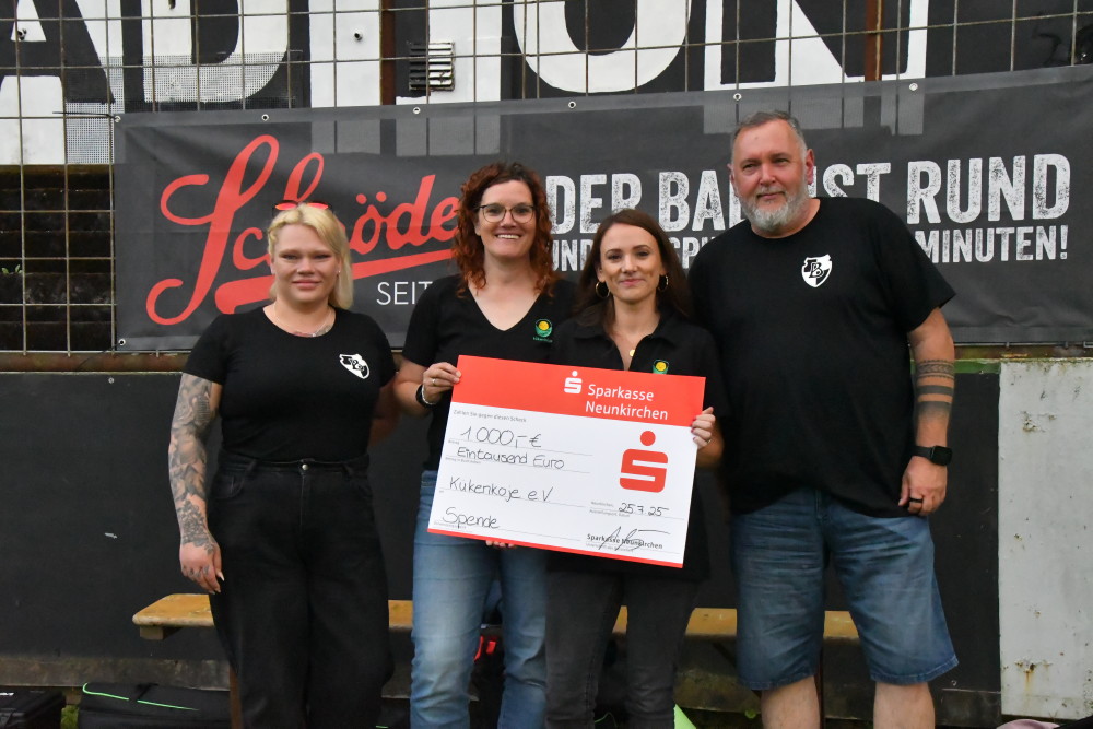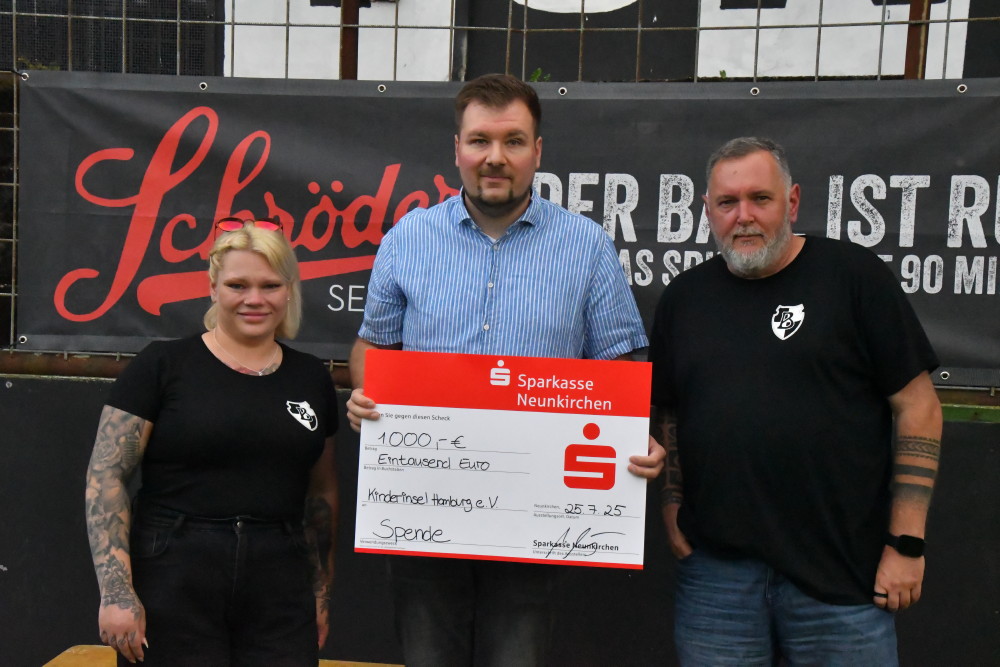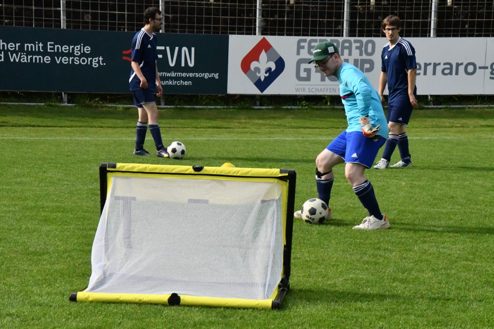 Lange Gesichter gibt es bei Borussia nach dem offiziellen Saisoneröffnungsspiel der Saarlandliga gegen den 1. FC Saarbrücken II. Sehr effiziente Malstätter stehlen mit 2:1 die drei Punkte aus dem Ellenfeld, obwohl die Borussen nach Jan Luca Rebmanns schnellem Ausgleichstreffer (Foto oben/-jf-) unmittelbar nach der Pause (46.) das Momentum auf ihrer Seite haben. Aber Chancenwucher verhindert ein weiteres Tor. Die Gäste dagegen werden zum Party-Crasher und schlagen eine Viertelstunde vor Schluss an diesem lauen Sommerabend eiskalt zu. „Saarbrücken schockt Neunkirchen“, titelt am nächsten Tag die „Saarbrücker Zeitung“ (SZ). Positiv in Erinnerung bleibt von diesem Abend die sozialen Aktionen im Ellenfeld: Sowohl die „Kinderinsel“ als auch die „Kükenkoje“ erhalten einen großzügigen Spendenscheck (Fotos unten/-jf-), die junge Menschen mit Handicap aus der Saarpfalz-Werkstatt absolvieren auf dem „heiligen Rasen“ des altehrwürdigen Stadions eine Trainingseinheit (Foto unten/-jf-) und zeigen dabei mitunter erstaunliche fußballerische Qualitäten!