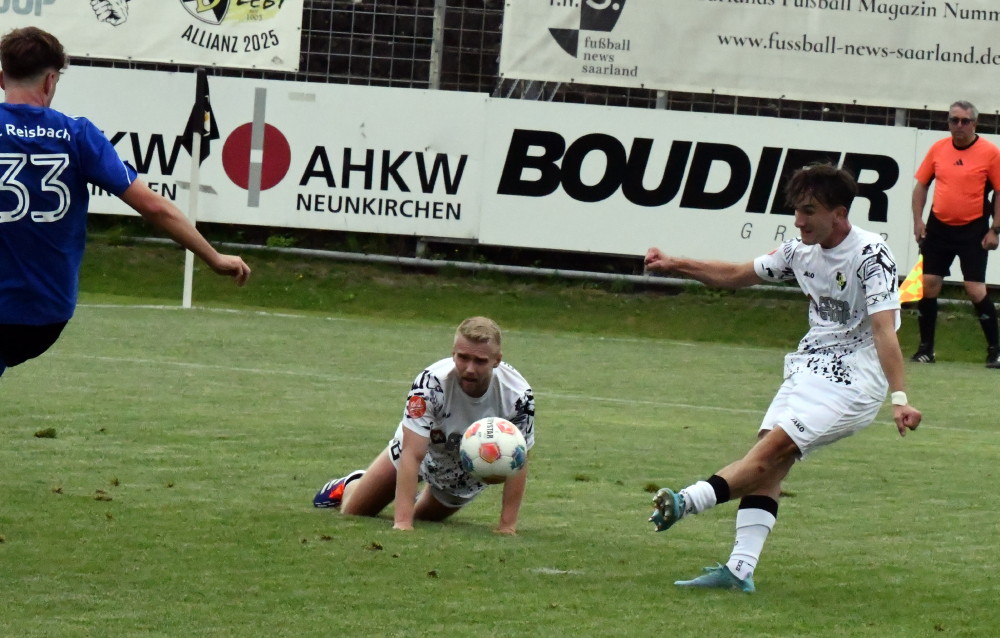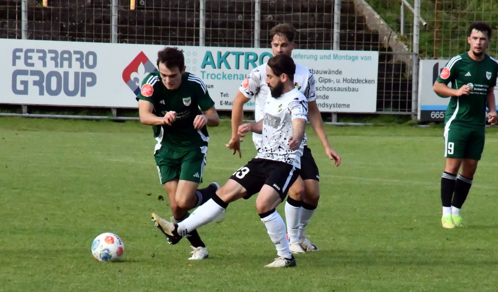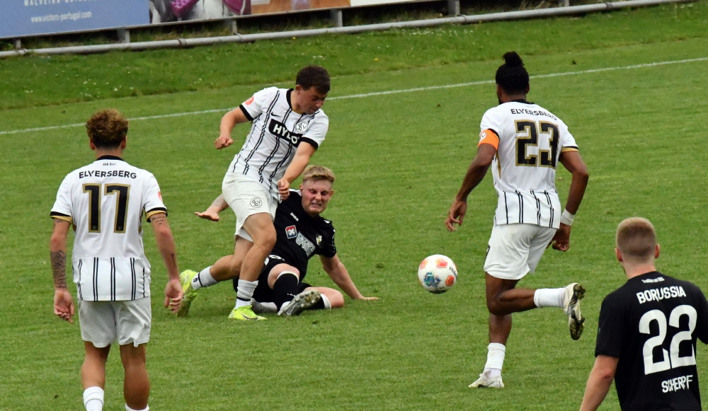 Das Vorhaben, den Rückenwind aus Bliesmengen mit ins kleine Derby gegen die U23 der SV Elversberg zu nehmen, misslingt gründlich! Zwar zündet nach schnellem 0:2-Rückstand (bereits nach 14 Minuten) Jan Eichmanns Anschlusstor kurz vor der Pause ein Hoffnungslicht an, doch das wird nach einer Stunde durch Salif Cisses 3:1 gnadenlos ausgepustet. Die Borussen (mit Leon Bayer / Foto oben: -jf-) schaffen keine Kehrtwende mehr, im Gegenteil: Der doppelte Koffi schraubt mit zwei Treffern in der Schlussphase binnen zwei Minuten das Resultat auf ein deprimierendes 1:5. Die Stimmung ist im Keller, wird aber durch das 5:1 im Nachholspiel gegen Aufsteiger SG Marpingen-Urexweiler wieder leicht angehoben. Die Borussen trotzen dabei auch einem 0:1-Rückstand und zeigen die richtige Reaktion auf das Debakel gegen Elversberg.