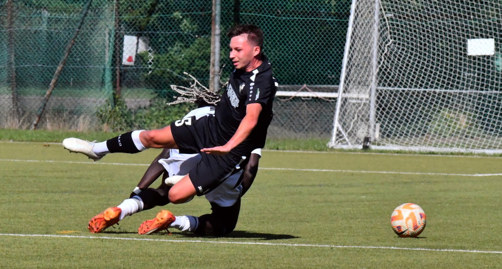 Auch das zweite Saisonspiel vergeigen die Borussen. Nach einer spannenden und offenen ersten Halbzeit bei Preußen Merchweiler läuft nach dem Seitenwechsel gar nichts mehr zusammen, so dass die Gastgeber nach gut einer Stunde zweimal einnetzen. Borussen-Coach Jan Berger will nach der Partie die indiskutable Leistung der zweiten Halbzeit nicht schönreden: „So kann man sich einfach als Borussia nicht präsentieren. Dafür müssen wir uns bei allen, die uns nach Merchweiler begleitet haben, entschuldigen!“ Im nächsten Heimspiel gegen Reisbach läuft es wieder besser: Borussia gewinnt durch die Treffer von Leon Bayer, Marco Dahler und Kristof Scherpf mit 3:0, nach dem vorentscheidenden 2:0 spielt die Mannschaft (mit Dominik Cullmann/Foto oben: -jf-) richtig befreit und locker auf und hätte am Ende noch höher gewinnen können. „Da hat sich gezeigt, welches Potential die Jungs haben“, war nach dem Spiel ein oft zu hörender Kommentar beim Borussen-Anhang!