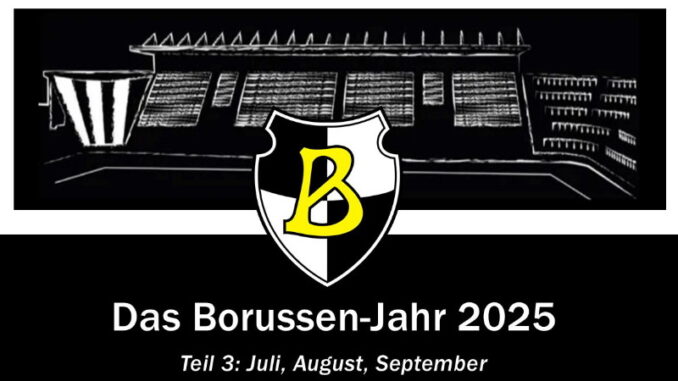 Zwischen den Jahren. Zwischen Heiligabend und dem Dreikönigstag scheint die Zeit still zu stehen und etwas anders zu verlaufen. Die Nächte sind lang und dunkel. Das Wetter ist oft stürmisch und man ist auf sich selbst zurückgeworfen. Seit jeher waren diese Tage zwischen Weihnachten und dem Dreikönigstag am 6. Januar dazu da, sich zu besinnen, Rückschau zu halten und sich auf das neue Jahr vorzubereiten. Die alten Römer feierten seit dem Jahr 153 v. Chr. den Beginn eines neuen Jahres und huldigten dem doppelköpfigen Gott Ianus: Der blickte gleichzeitig zurück als auch voraus, nach ihm ist unser Monat Januar benannt. Anlass genug, um in schnelllebiger Zeit auch aus der Borussen-Perspektive zurückzuschauen auf ein bewegtes und turbulentes Jahr 2025. Unser Bilderreigen lässt im dritten Teil die Highlights des dritten Quartals von Juli bis September noch einmal lebendig werden.