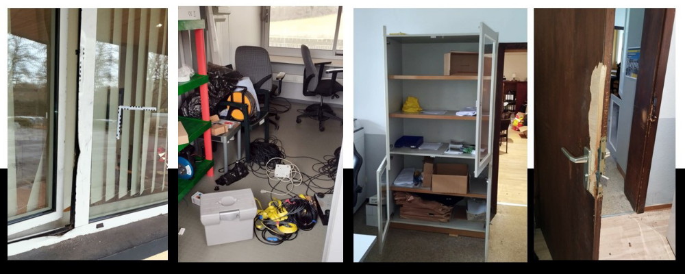 Doch damit nicht genug. In der Nacht von Montag auf Dienstag wurde im Ellenfeld-Stadion eingebrochen (Fotos oben). Über das aufgebrochene Geschäftsstellenfenster gelangen die Einbrecher, haben die Geschäftsräume und das Trainerbüro bei der Suche nach Diebesgut „auf den Kopf gestellt“ und Computer entwendet. Auch die Türen zum Gang wurden gewaltsam geöffnet, die Werkstatt blieb ebenfalls nicht verschont. Von der Halle her wurde auch in den VIP-Raum eingedrungen. Anschließend setzten die Eindringlinge ihren Weg Richtung Tribüne fort, wo sie sowohl den Verkaufsraum als auch die Sprecherkabine heimsuchten, aus der einiges entwendet wurde. „Die Täter müssen wohl eine ganze Zeit lang ihr Unwesen hier getrieben haben“, berichtet Christian Müller. Das Vorstandsmitglied der Borussia nahm reichlich frustriert gemeinsam mit der Polizei, die Spuren sicherte, den angerichteten beträchtlichen Schaden in Augenschein. „Ich frage mich langsam, was wir verbrochen haben, dass wir das jetzt auch noch erleben müssen“, spricht aus Christian Müller angesichts all der Unglücksnachrichten der Hiob aus dem alten Testament. Sollte jemand etwas beobachtet haben: Sachliche Hinweise bitte an die Polizei Neunkirchen. (-jf-)