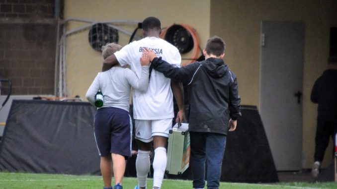 Es war nur eine kleine Szene am Rande nach Spielschluss am vergangenen Samstag gegen Eppelborn. Bemerkenswert und doch nahezu unbemerkt. Denn die Zuschauer hatten das Ellenfeld-Stadion bereits verlassen, sich auf den Weg gemacht. Einige nach Hause, einige in den VIP-Raum, um das, was sich zuvor 90 Minuten auf dem Rasen abgespielt hatte, bei einem kühlen PARKBRÄU zu diskutieren. Die steilen Ränge waren leer, eine Brise Herbstwind wehte ein paar Blätter über den Rasen. Dort stand Nyger Hunter, ein paar Minuten zuvor noch im intensiven Austausch mit Trainer Björn Klos. Ziemlich ausgepumpt, in Gedanken versunken, einsam und verlassen. Langsam trottete er Richtung Kabine, den Medizinkoffer in der rechten Hand. Doch zwei junge Borussen hatten auf ihn gewartet. Sie nahmen Borussias Mittelfeldspieler in den Arm, legten ihre Hand auf seinen Rücken. Als wollten sie ihn trösten. Vielleicht war es auch eher ein Glückwunsch, denn Nyger Hunter hatte ein gutes Spiel gemacht.