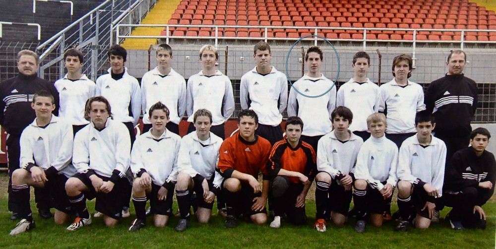 Heute Trainer der DJK Ballweiler (oben), im Borussia-Jubiläumsjahr 2005 Teil einer starken Borussen-C-Jugend (eingekreist, unten). Wer erinnert sich? Oben v.li.: Betreuer Jürgen Jost, Marco Sanginiti, Osman Akyol, Sascha Lang, Sebastian Groß, Pascal Commercon, Florian Bohr, Marvin Gabriel, Manuel Schuck, Trainer Wolfgang Frisch. Unten v.li.: Patryk Krawiec, Max Wettmann, Julian Fricker, Tobias Ziegler, Tobias Jost, Yannik Welde, Tim Cullmann, Anton Krutsch, Kevin Momber. (Fotos: -jf-/Ellenfeldverein e.V. Archiv Borussia Neunkirchen)