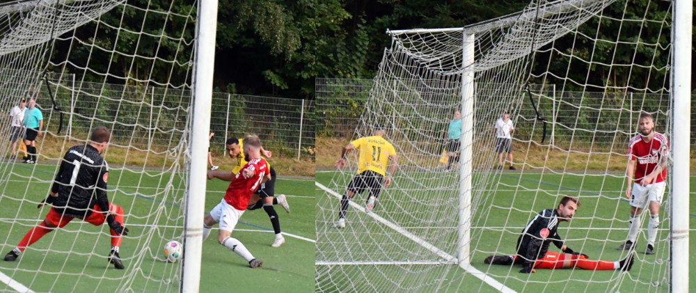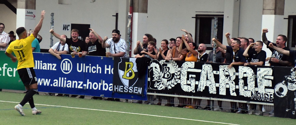 Rückblick: Im Vorjahr stellte Sayfedine El Khadem mit seinem Tor zum 2:0 die Weichen auf Sieg (oben li.), ehe er jubelnd abdreht (oben re.) und anschließend von den Fans gefeiert wird (unten). Wiederholung morgen erwünscht! (Fotos: -jf-)