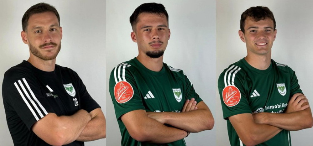 Sie prägen das Gesicht der DJK Ballweiler (v. li.): Der spielende Co-Trainer Lukas Grünbeck, der bislang beste Torschütze Nico Bleymehl und Top-Vorbereiter Tim Walle. (Fotos: fupa.net)