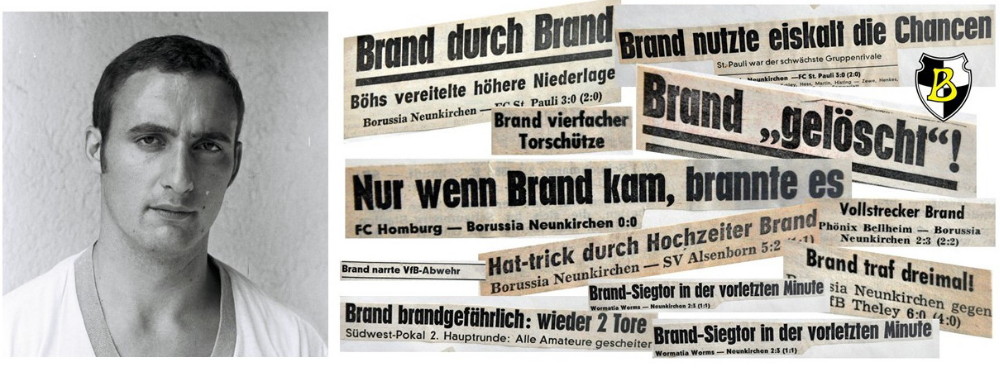 Bei diesem Namen und den Torjägerqualitäten liegt die Metapher vom Feuer sofort auf der Hand. „Nur wenn Brand kam, brannte es“, „Brand durch Brand“, „Brand brandgefährlich“, „Brand gelöscht“ – sorgsam in Klarsichthüllen verpackt hütet er die gesammelten Schlagzeilen noch heute in seinem Privatarchiv im Trierer Süden. In der alten, damals noch zweitklassigen Regionalliga Südwest (1963 bis 1974) ist er mit 118 Treffern (48 für Eintracht Trier, 70 für Borussia Neunkirchen) Rekordtorschütze – in 234 Liga-Spielen eine mehr als respektable Quote! „Ich war als Stürmer eher der Gerd-Müller-Typ. Es war Intuition, dass ich häufig besser stand als mein Gegenspieler“, charakterisiert er sich in der Rückschau. Seine Bescheidenheit in allen Ehren, aber Horst Brand war in den Jahren 1969 bis 1973 der treffsicherste Mittelstürmer im Borussen-Trikot! Ins Ellenfeld kehrte der Trierer 1990 als Trainer zurück – mit nicht weniger Erfolg, holte er doch mit der Borussia seine dritte Südwestmeisterschaft und klopfte unüberhörbar ans Tor zur Bundesliga. Leider vergeblich, wie schon 1971 und 1972 als Spieler.
