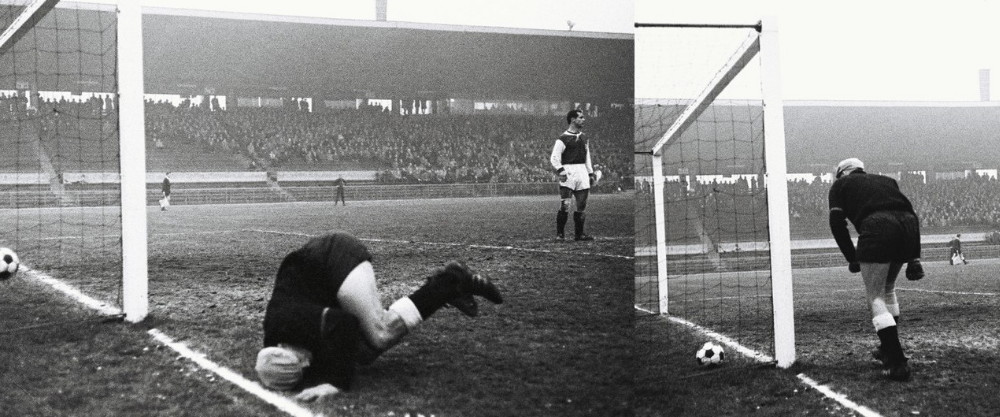 Da streckt sich Günter Sawitzki vergeblich: Das Geschoss von Erwin Glod passt in den Winkel (oben / Ball hinter dem Torpfosten erkennbar), ehe der VfB-Keeper nach einer Rolle das Leder aus dem Netz holen muss (unten). Aber mehr als der zweimalige Anschlusstreffer war für die Borussia an diesem Samstagnachmittag nicht möglich. (Fotos: Ellenfeld-Verein e.V. / Archiv Borussia Neunkirchen Hartung)