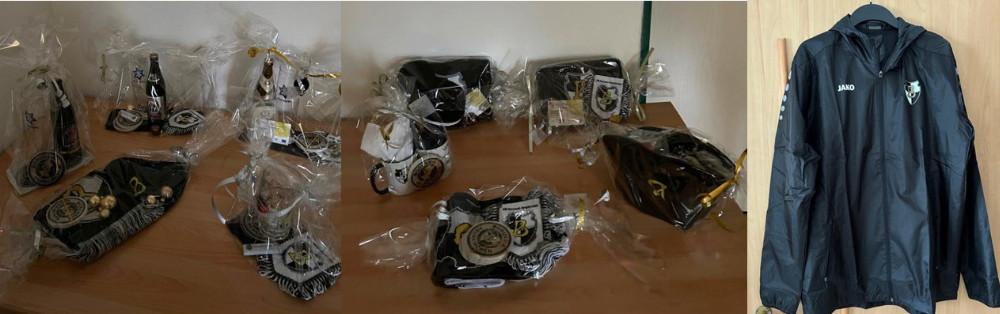 Das Weihnachtsfest ist nicht mehr weit weg. Manch einer ist noch auf der Suche nach einem passenden Geschenk, um seinen Lieben eine kleine Freude zu bereiten. Dshalb, Borussen-Fans, aufgepasst: Vor dem Heimspiel gegen Rot-Weiß Hasborn am morgigen Samstag (Anstoß: 14.30 Uhr) findet vor dem Stadion wieder ein Verkauf von Fan-Artikeln statt. Gabi Karioth hat für Euch aus Schal, Wimpel, Bierdeckel, Aufkleber und vielem mehr ein paar Arrangements zusammengestellt, die sich, schon fix und fertig und liebevoll verpackt, hervorragend als Weihnachtsgeschenk eignen! Ebenfalls eingetroffen: Die Borussen-Regenjacken. Greift reichlich zu und unterstützt die Borussia gerade jetzt! (-jf-)