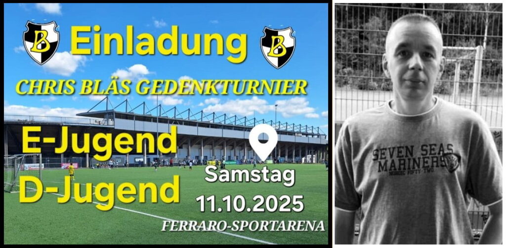 Bald ist es wieder soweit! Borussia startet in der Ferraro-Sportarena am Samstag, dem 11. Oktober 2025 mit dem alljährlichen Chris-Bläs-Gedenkturnier. Teilnehmen werden zahlreiche E- und D-Jugendmannschaften aus der heimischen Region. Anmeldungen sind noch möglich bis morgen, Samstag, 5. Oktober, bei Marco Reiser (Tel. 0162-4165400). Für das leibliche Wohl ist dank de Verkaufsteams im Jugendraum bestens gesorgt. Herzliche Einladung schon jetzt an alle Borussen und Freunde des Jugendfußballs! Zur Erinnerung: Im April 2023 ist Borussen-Fan Chris Bläs plötzlich und unerwartet im Alter von 51 Jahren, nur wenige Tage vor seinem 52. Geburtstag, viel zu früh aus dieser Welt gegangen. Noch kurz zuvor hatte er ein Heimspiel der Borussia im Ellenfeld besucht. „De Chrissie“, wie er von seinen Freunden liebevoll gerufen wurde, war in jungen Jahren auch als Fußballer bei Borussia III (unter Bruno Bouillon) aktiv, kickte auch in jener Mannschaft, die sich als ehemaliges Ministranten-Team der katholischen Pfarrei St. Marien der Borussia angeschlossen hatte, mit großer Begeisterung mit und engagierte sich darüber hinaus bei den unterschiedlichsten Veranstaltungen (Weihnachtsfest, Stadtfest, Rosenmontagszug, Stadion- und Ordnungsdienst) für die Borussia. Wo es anzupacken galt, stand Chris Bläs stets zur Verfügung. Um seiner geliebten Borussia zu folgen, nahm er sich – wann immer es irgendwie möglich war er – Urlaub in seiner Firma Treofan Germany GbH & Co KG, stets positiv gestimmt und voller Hoffnung, die Borussia auch wieder höherklassig spielen zu sehen. Vor den Heimspielen traf sich Chris Bläs dabei meist mit Freunden und Kollegen am Stammtisch, um die Aussichten der Borussia zu diskutieren, gemeinsam ging es anschließend Richtung Ellenfeld. Im Gedächtnis an Chris Bläs führt die Borussen-Jugend seit Oktober 2023 das Jugendturnier durch. Herzliche Einladung schon jetzt an alle Borussen und Freunde des Jugendfußballs! (-jf-)