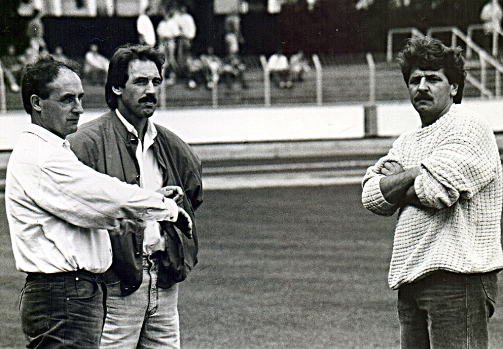 Gleich mehrfach versuchte sich Paul Linz (re.) als Trainer beim FSV Salmrohr, hier mit Horst Brand (li.) und Friedhelm Rach (Mitte), (Foto: -jf-)