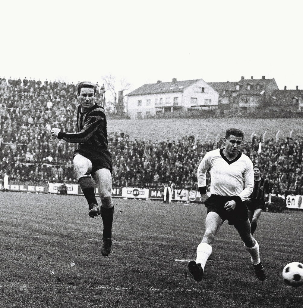 Es waren wie derzeit trübe Novembertage, als die Borussia vor rund 60 Jahren in der Bundesliga, wie es der Spielplan wollte, gleich zweimal auf die Frankfurter Eintracht traf. Am 21. November 1964 unterlag der Aufsteiger aus dem Ellenfeld im Waldstadion denkbar knapp mit 0:1. Ein Jahr später und einen Tag früher, am 20. November 1965, gab es im Ellenfeld getreu dem Motto „Erbarme, die Hesse komme!“ – eine bittere 1:6-Heimniederlage. Wir blicken in diesen Tagen, an denen sich diese beiden Partien zum 60. bzw. 61. Mal jähren, in zwei Beiträgen mit Wort und Bild zurück.