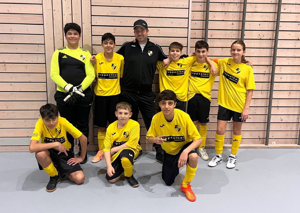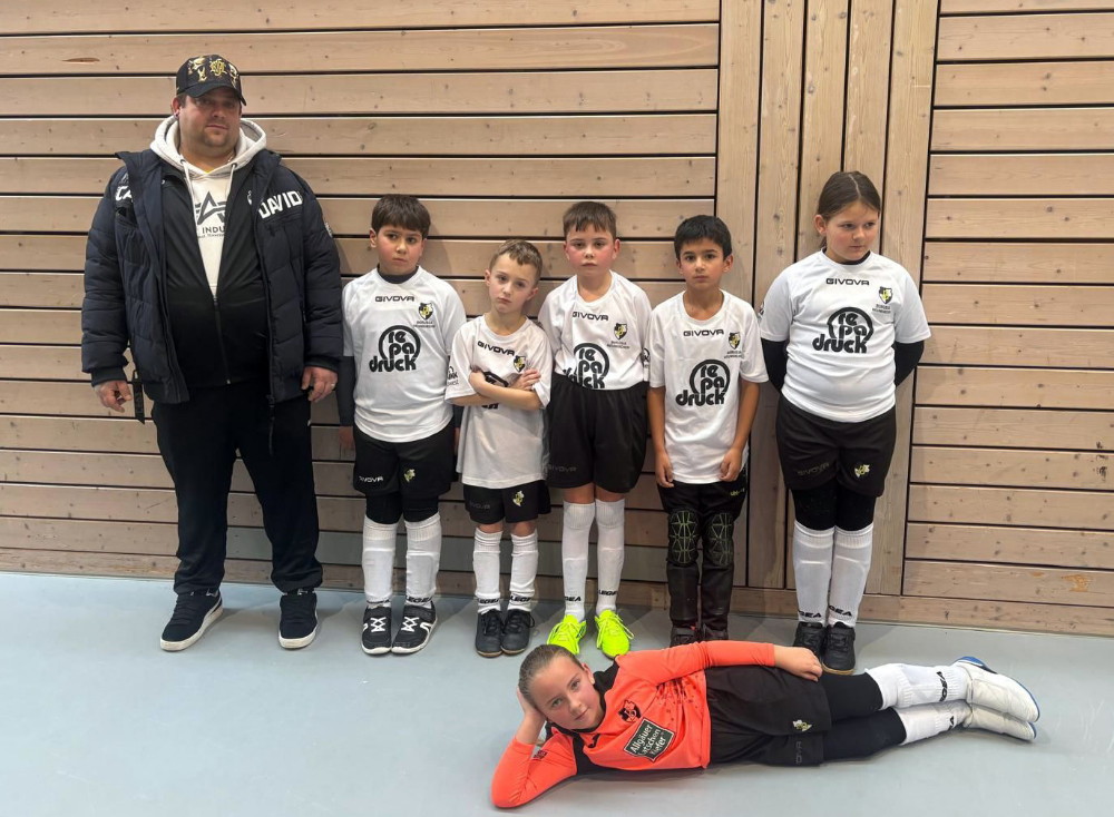 Auch die beiden E-Jugendteams ereilte trotz aller Anstrengungen das Aus in den Gruppenspielen. Die E1 unter Coach Jörg „Pogie“ Jung scheiterte nach zwei Siegen, einem Unentschieden und einer Niederlage trotz starker 7 Punkte nur denkbar knapp, die E2 und ihr Trainer Claus Dilk verbuchten drei Unentschieden und mussten sich einmal geschlagen geben – bedeutete Platz 4 in der Endabrechnung.