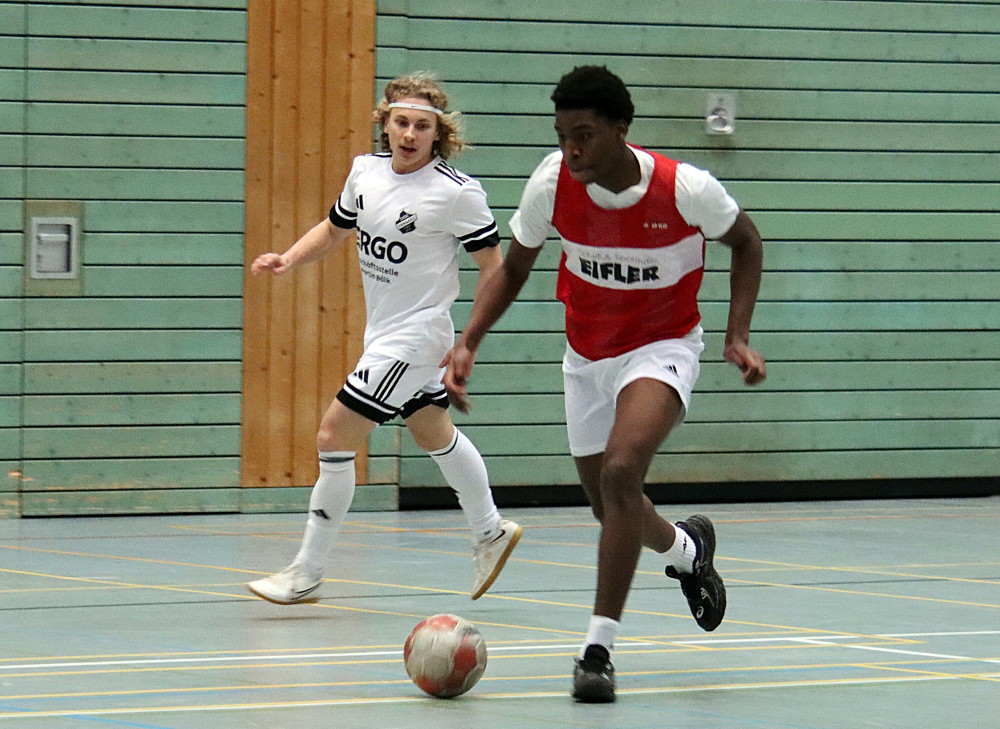 Das wurde gleich im ersten Spiel deutlich, als die jungen Borussen den gegen die SVGG Hangard II mit 4:1 einen deutlichen Sieg herausschossen. „Da hätten wir eigentlich noch höher gewinnen müssen“, so Kevin Lüders Bewertung des Auftaktspiels. Der Trainer musste im zweiten Spiel mit ansehen, wie seine Jungs viel Lehrgeld zahlen mussten und gegen den späteren Stadtmeister SV Furpach, in dessen Reihen mit Sven Sellentin ein ehemaliger Profi (FC Homburg, Spvgg Elversberg) mit all seiner Routine kluge Regie führte, mit 2:11 regelrecht unter die Räder kamen. „Da waren wir zu offensiv und haben uns vom Gegner, der mit Ex-auskontern lassen“, so Kevin Lüder. Dennoch war die Qualifikation für das Viertelfinale geschafft.