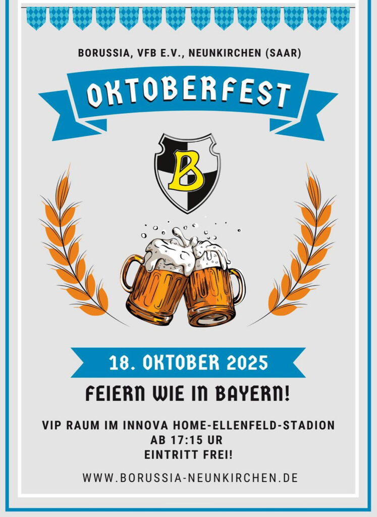 HINWEIS: Und nach dem Spiel:  Direkt im Anschluss steigt ab 17:15 Uhr das Oktoberfest im VIP-Raum: Stimmung, Musik & gute Laune, bayerische Atmosphäre – Eintritt ist frei! Kommt vorbei und feiert mit uns – zuerst Fußball, dann Oktoberfest!