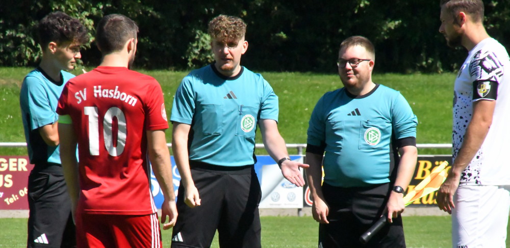 Schiedsrichter des Spiels gegen Limbach ist (nach Angaben von fussball.de) Luca Schilirò. Der Italiener pfeift für den SV Hermann-Röchling Höhe Völklingen und war Trainer des Teams der Schiedsrichtergruppe Saarlouis, das beim diesjährigen 28. Volksbanken Hallenmasters der Unparteiischen den Titel gewann. Luca Schirilò, der im Golfclub Saarbrücken auch begeisterter Anhänger des Spiels mit den kleinen Bällen ist, hat viel Erfahrung in der Regionalliga aufzuweisen. Letztmalig leitete der Fachberater für Wohnungswirtschaft ein Spiel der Borussia zu Saisonbeginn im August dieses Jahres, als die Borussen im Hasborner Waldstadion mit 0:3 unterlagen (Bild oben Mitte mit den Kapitänen Johannes Gemmel und Marco Dahler/Foto: -jf-). Ihm stehen an den Seitenlinien die Assistenten Abdullah Alzoubi und Jonas Hector zur Seite. Wir wünschen dem Schiedsrichterteam eine gute Anreise und eine gelungene Spielleitung. (-jf-)