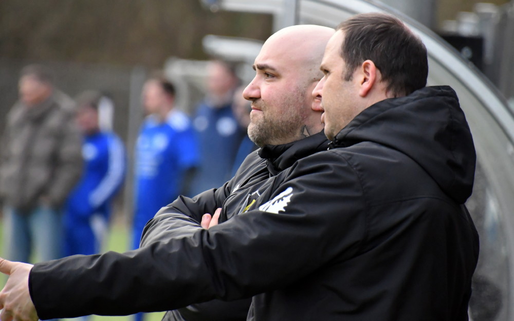 „Nichts ist unmöglich, alles ist möglich“: Borussias Trainer Kevin Lüder (hinten) und der sportliche Leiter Boris Schellenberg haben alles gegeben, um ihre neuformierte Truppe bestmöglich auf den Rundenstart vorzubereiten, wissen aber auch um die Unwägbarkeiten. (Foto: -jf-)