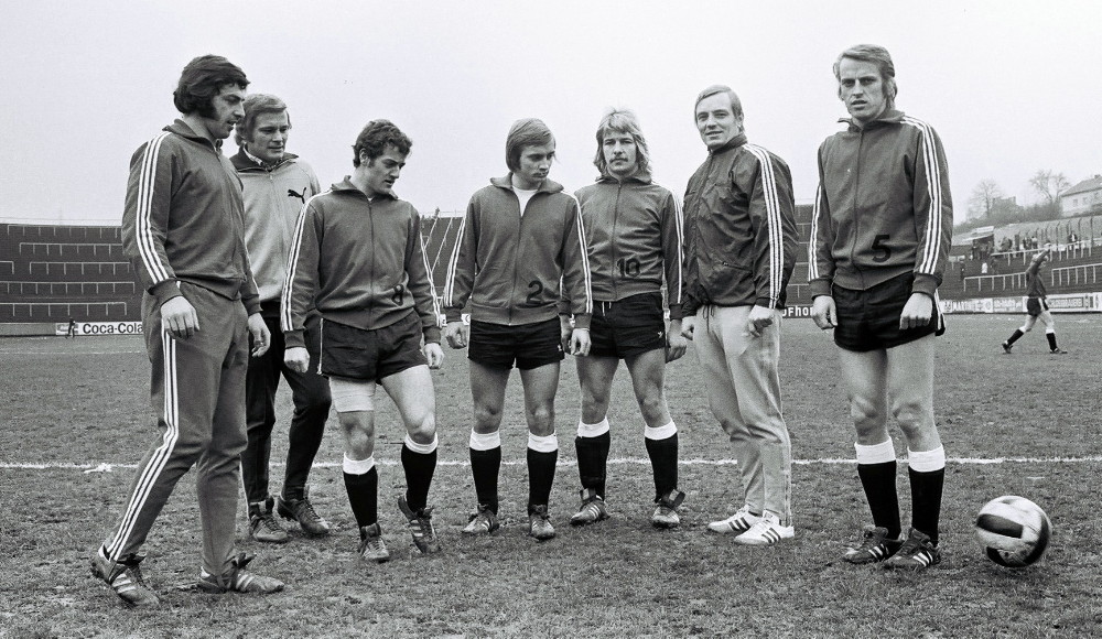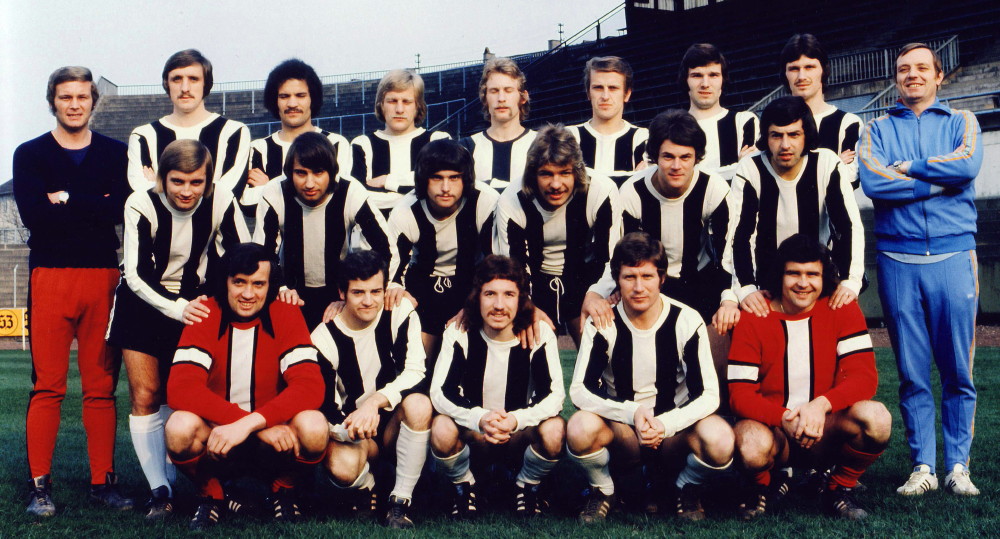 Untenstehend: Erwin Türk und seine Borussen-Teams im Ellenfeld. (Fotos: Ellenfeld-Verein e.V. / Archiv Borussia Neunkirchen)
