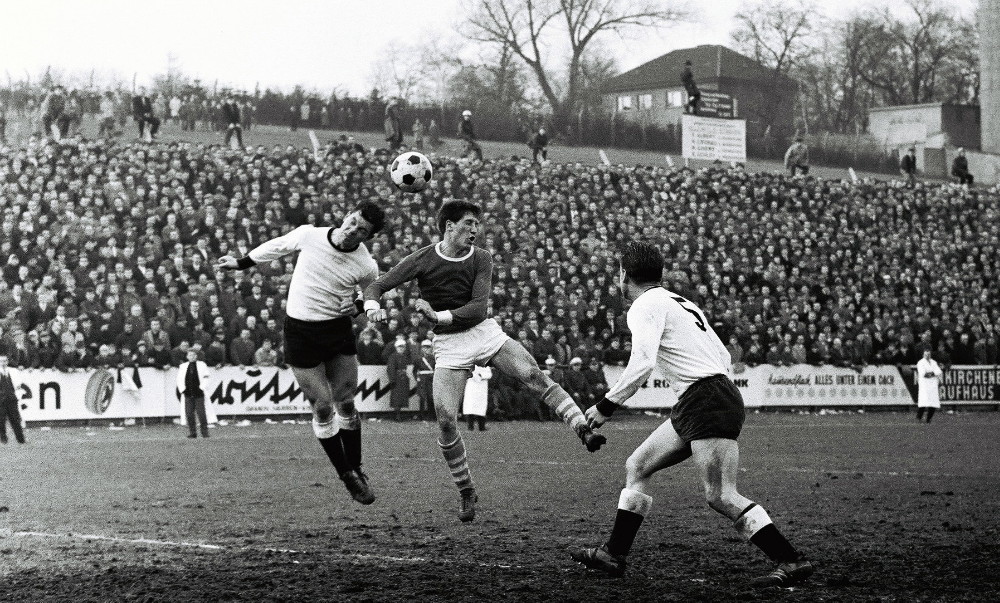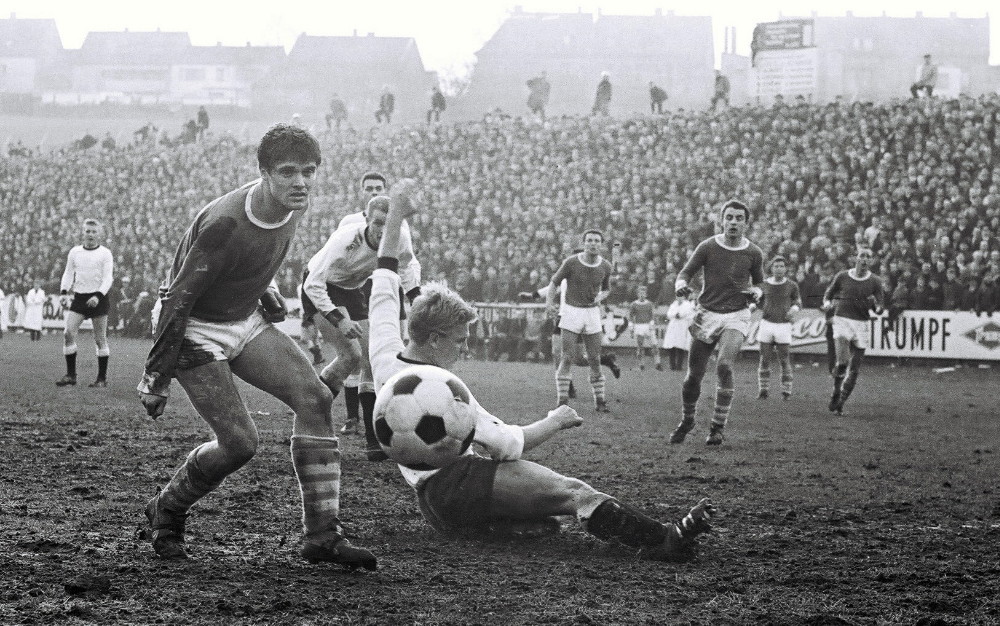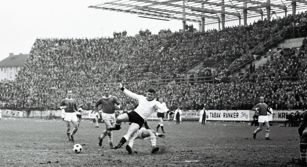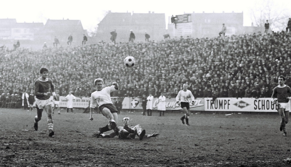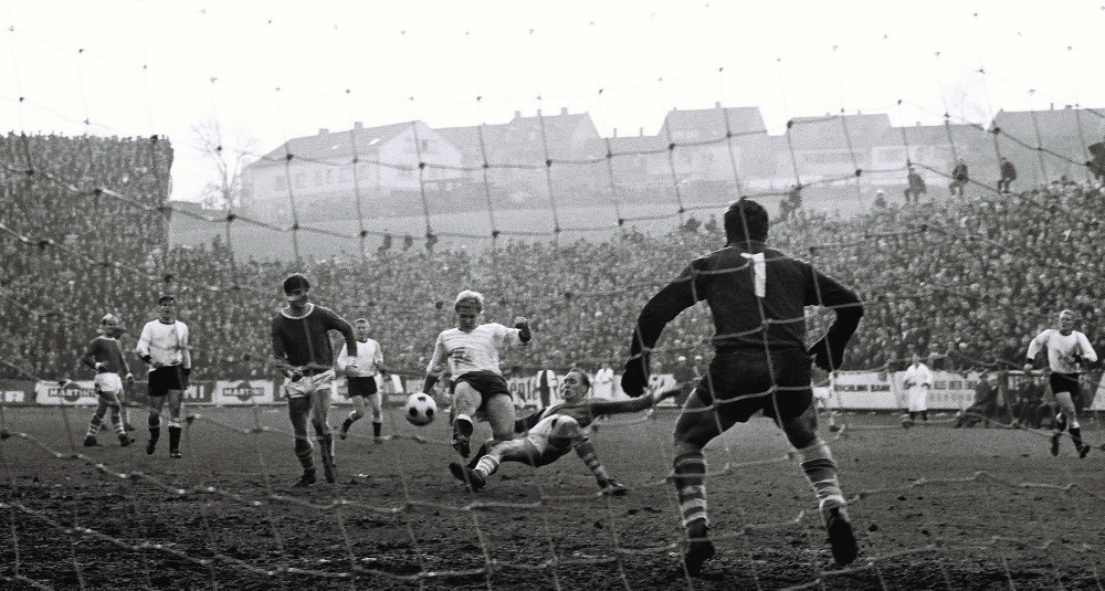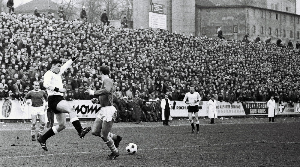 Max Klein war der Erste, der „vom Schalke des Südwestens“ sprach. Zur Genese dieses Begriffs trugen beim Autor des Buches „Höllenglut an Himmelfahrt“, das die Aufstiegsrunden zur Bundesliga in den Jahren 1964 bis 1973 zum Thema hat, verschiedene Faktoren bei. Neunkirchen: Berühmt für Kohle, Stahl und Eisenindustrie. Borussia: ein Fußballverein, dem es einst gelang, eine hohe Identifikation mit der Mannschaft zu schaffen. Unter dem Motto „Hoch lebe Eisen, hoch lebe Stahl, hoch lebe die Borussia“ hatten Fans aus fast alle gesellschaftlichen und wirtschaftlichen Schichten den Traditionsverein aus der kleinsten Bundesligastadt als Sympathieträger des saarländischen Fußballs unterstützt und waren im Stadion zu einer fördernden Einheit geworden. Ein Stadion, das als eines der ältesten Schauplätze des deutschen Fußballs gilt – seit mittlerweile fast 114 Jahren rollt dort der Ball. Keine Frage, in den 60ern entstand dort im Ellenfeld ein Mythos, der dem vom Gelsenkirchener Kultclub ähnlich war. In dieser Zeit trafen beide, die Königsblauen aus dem Ruhrpott und die Schwarz-Weißen aus dem Südwestens mehrmals aufeinander. Mit ziemlich ausgeglichener Bilanz: Schalke siegte vier Mal, die Borussen drei Mal. Einmal trennten sich beide Teams unentschieden. Eine ganz besonderes dramatische sportliche Begegnung lieferten sich beide Clubs heute vor genau 62 Jahren. Wir blicken zurück.