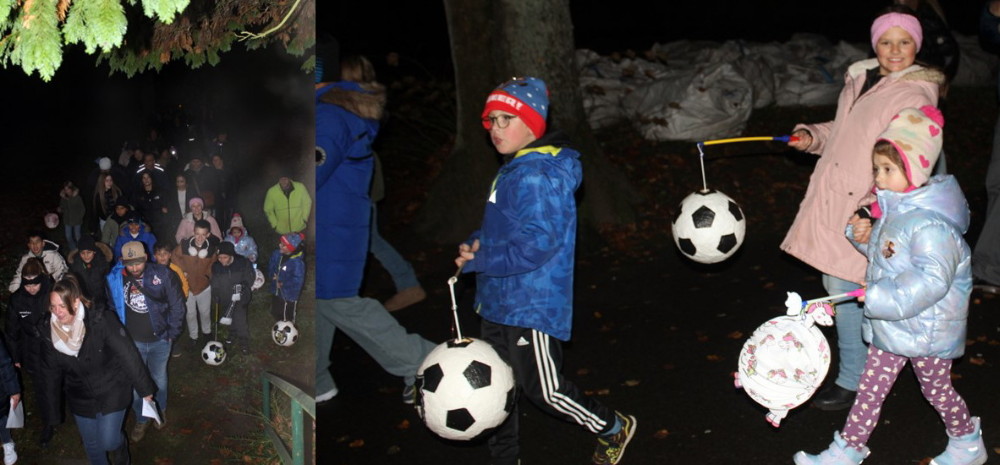 „Das Licht erstrahlt im ganzen Land, ich trage eins in meiner Hand“ – mit ihren bunten Laternen mit Fußballmotiven und dem Borussia-Logo zogen am Samstagabend zahlreiche Jugendfußballer mit Eltern und Familien rund um das Ellenfeld-Stadion los (Foto oben), um des heiligen Martin zu gedenken, der sich am Stadttor in Amiens (Frankreich) bekanntlich eines armen Bettlers erbarmte und ihm die Hälfte seines Soldatenmantels gegen die Kälte schenkte. Erwärmen konnten sich die Teilnehmer nicht nur an der guten Stimmung, sondern auch an heißen Getränken und dem Martinsfeuer (Foto unten), das den Abschluss eines gelungenen Umzugs bildete. Herzlichen Dank an alle, die im Rahmen der Organisation zum Wohlfühlen beigetragen haben! Ebenso vielen Dank an Susi Welter und Rainer Hoffmann für die Fotos! (-jf-)